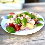 Miks dressingen sammen og bland den med salaten. Put evt. lidt basilikum på toppen som pynt for the looks 😊